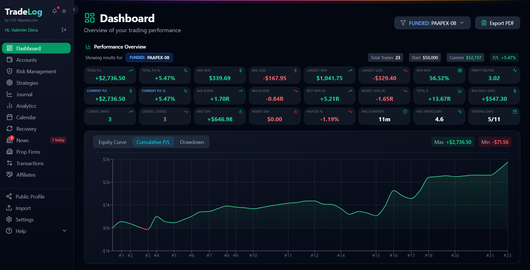 Tout ce dont vous avez besoin pour trader avec confiance, suivre vos performances et obtenir un compte financé — en un seul endroit. TradeLog ne se contente pas d'enregistrer vos trades. Il vous aide à corriger vos erreurs, à structurer votre reprise et à rester discipliné. Probablement l'outil de trading le plus complet que vous utiliserez.